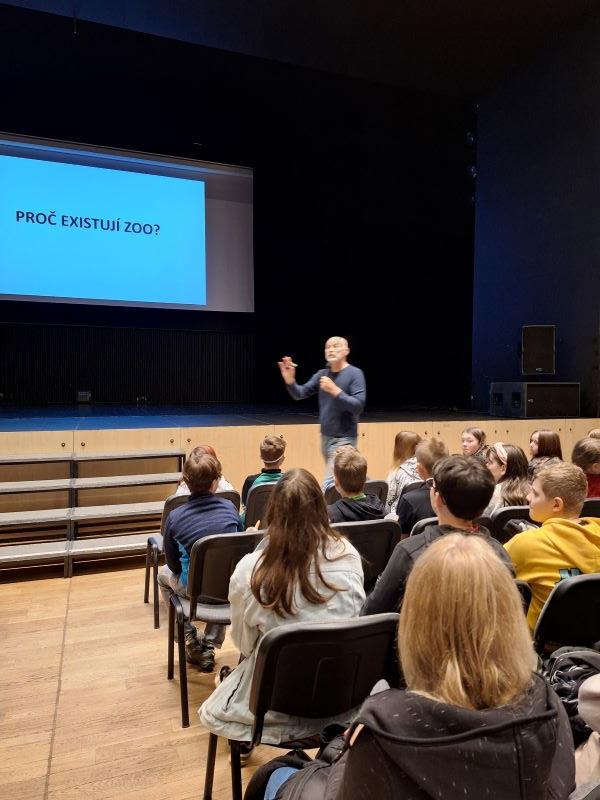 Akce Jak se dělá ZOO s Petrem Fejkem proběhla 17. 4. v Eurocentru. Účastnily se třídy 4.B, 5.A, 6.B, 6.A a všechny sedmičky.