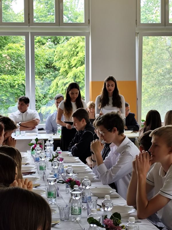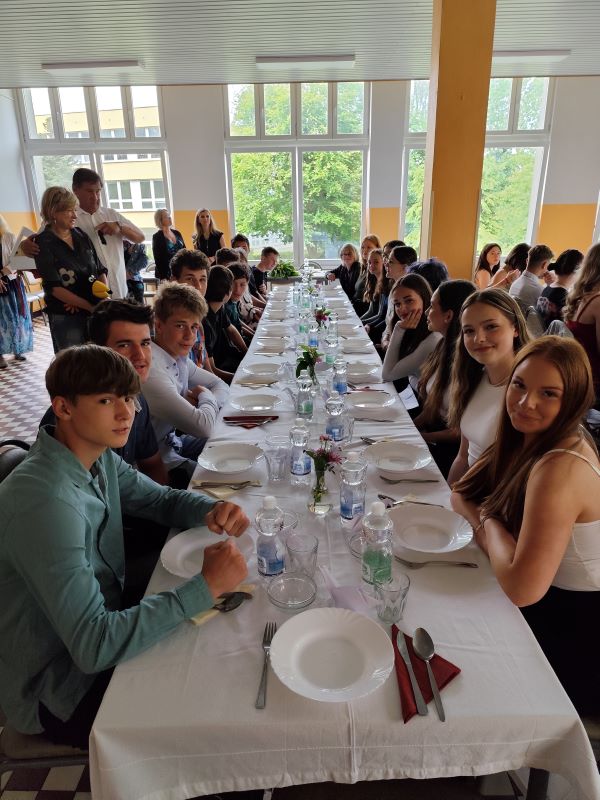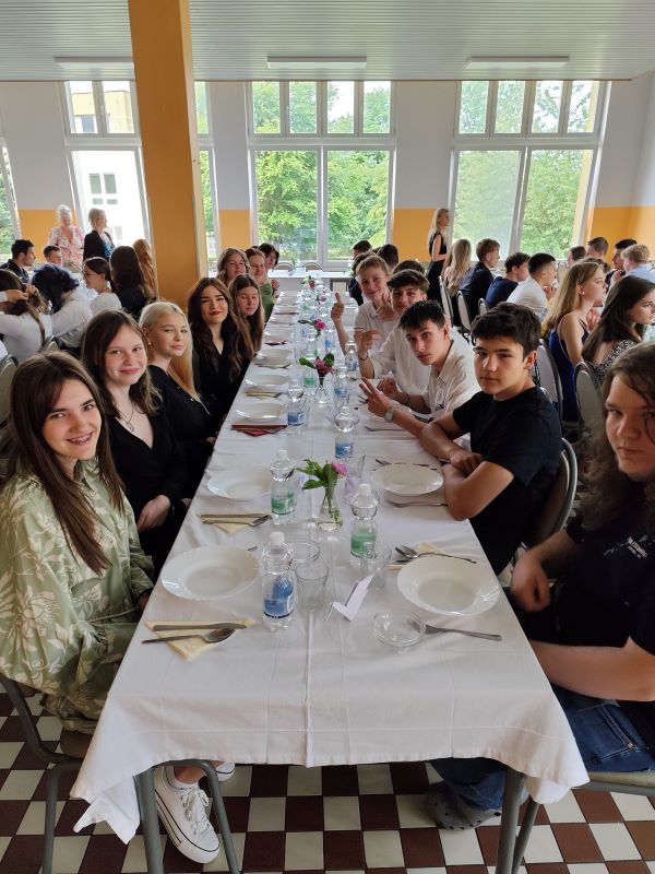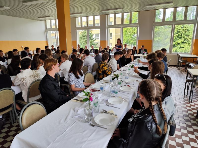 V pondělí 10. 6. proběhlo rozloučení s deváťáky na slavnostním obědě ve školní jídelně.