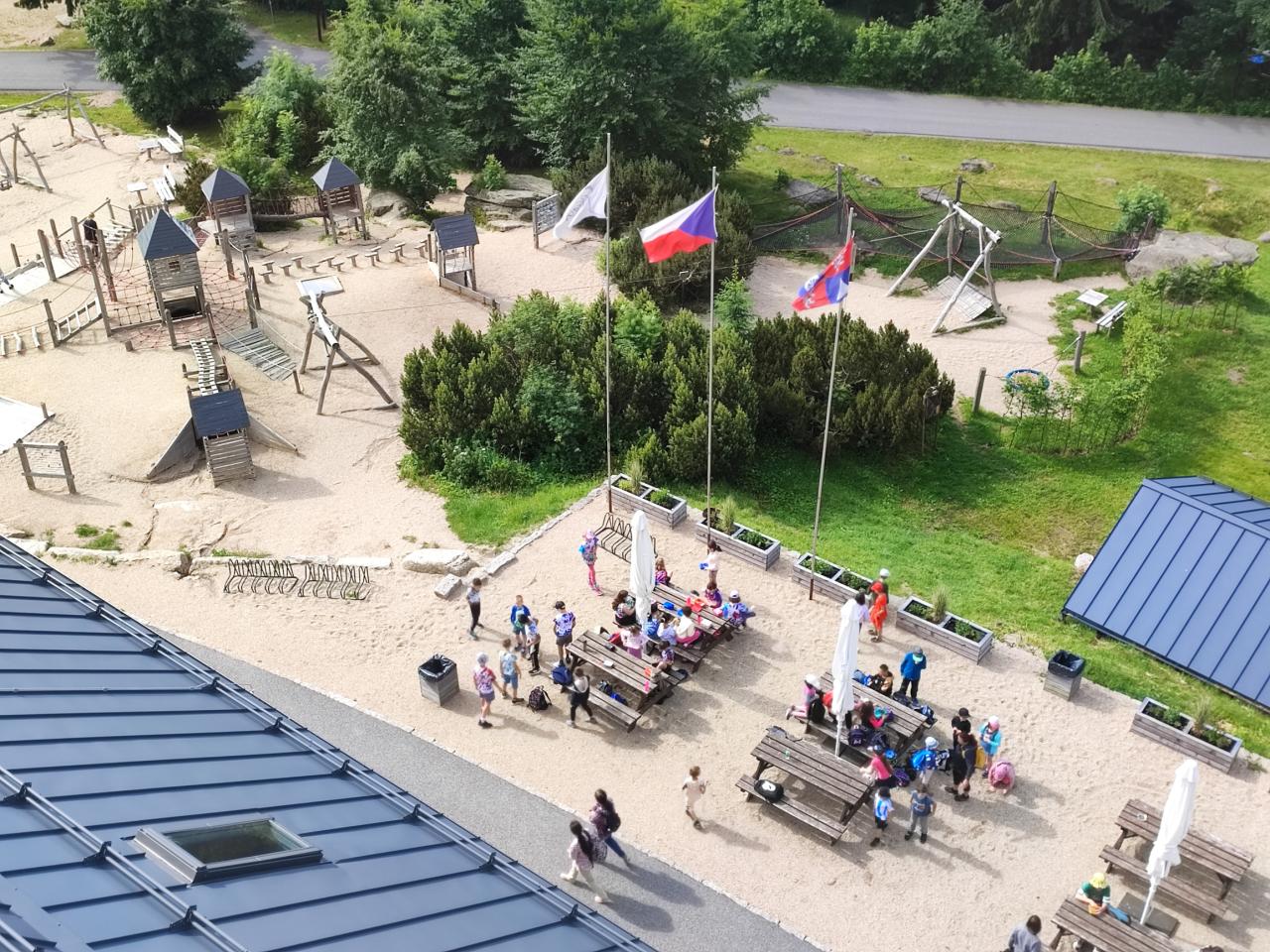 Na vrcholu sedm statečných vystoupilo na rozhlednu a společně jsme se pokochali výhledy na Jizerské hory, Ještěd, Liberec a Jablonec, zahlédli jsme i Trosky. Všichni byli nadšení z krásného hřiště a z nákupů ve stánku.