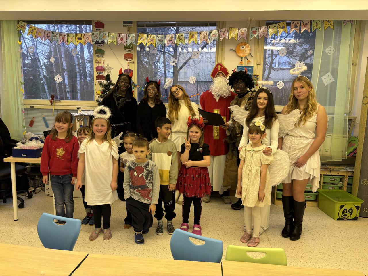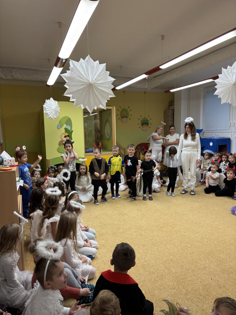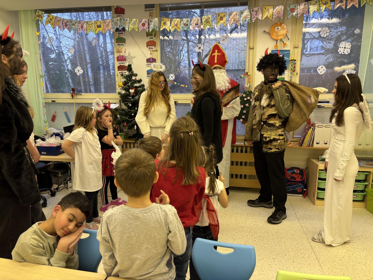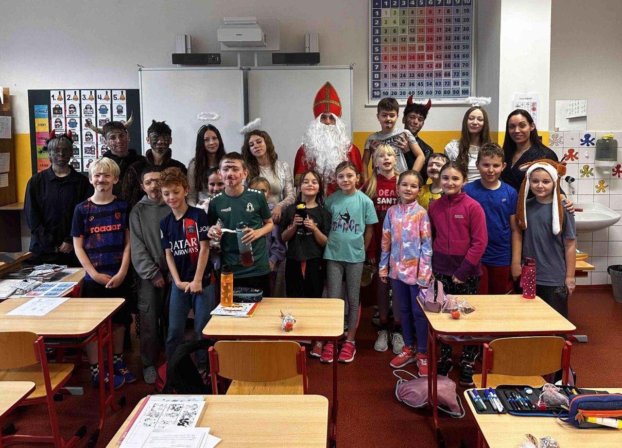 Naši žáci z 9. tříd se i letos ujali krásné tradice a připravili pro děti nezapomenutelného Mikuláše s čerty a anděly. Celý den se nesl ve znamení radosti, smíchu a napětí – tak, jak to má na Mikuláše být.