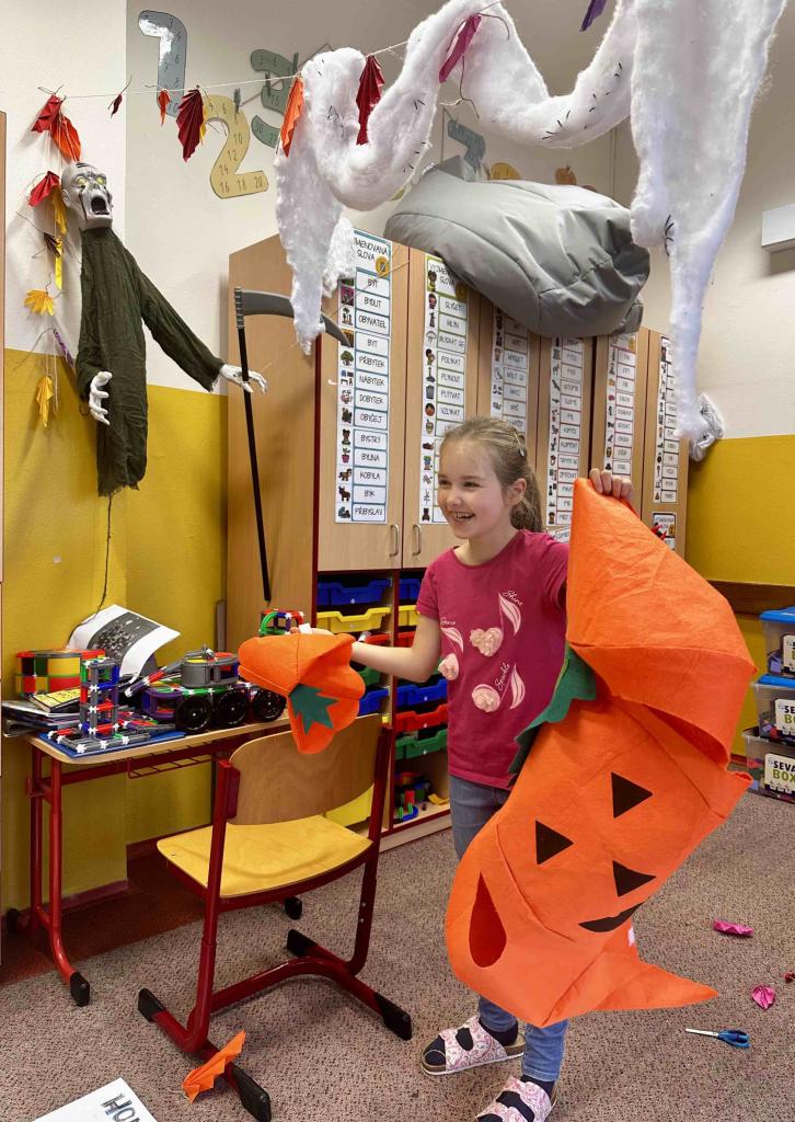 Naše třída se letos zapojila do školní soutěže o nejlepší halloweenskou výzdobu. Děti si z domova přinesly spoustu krásných dekorací s danou tematikou a další jsme si společně vyrobili přímo ve škole.