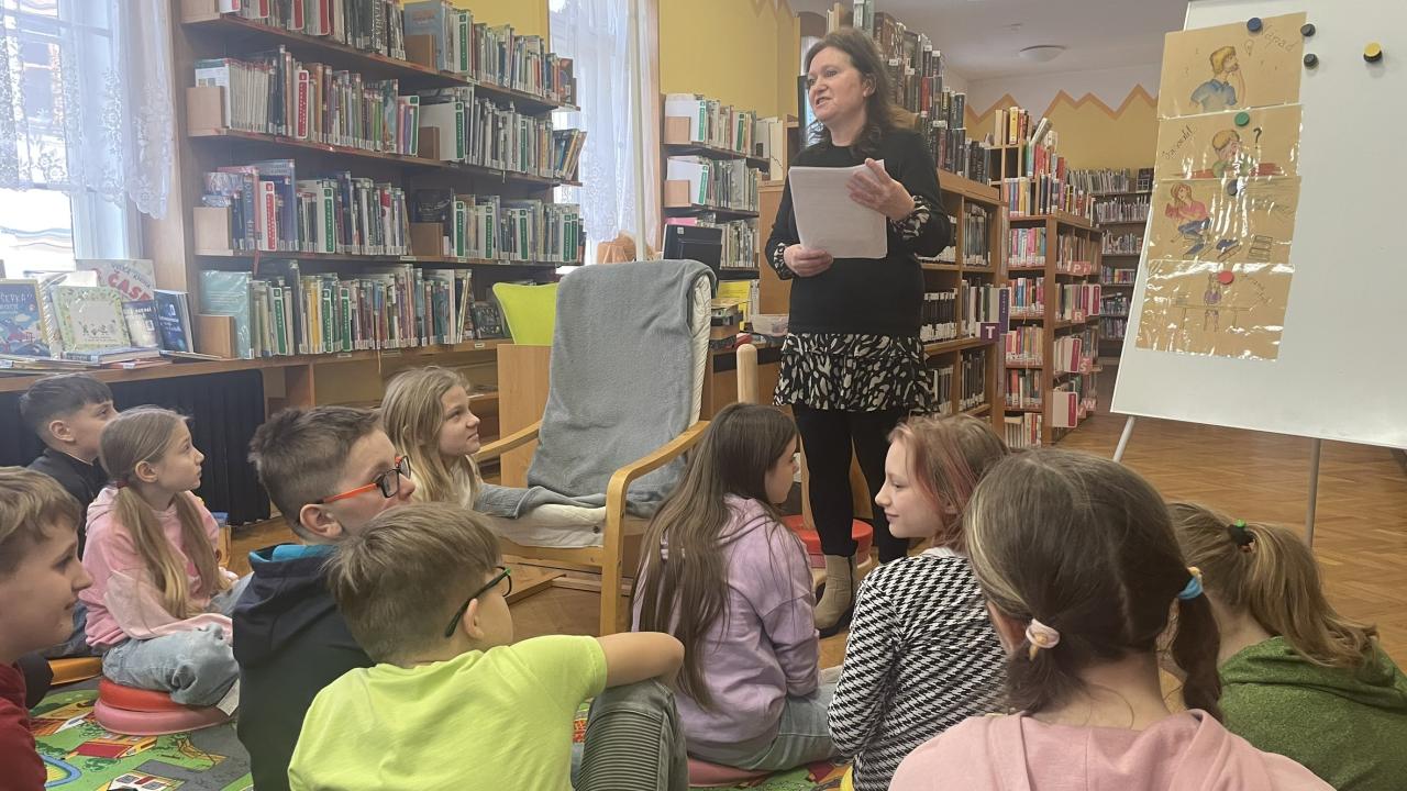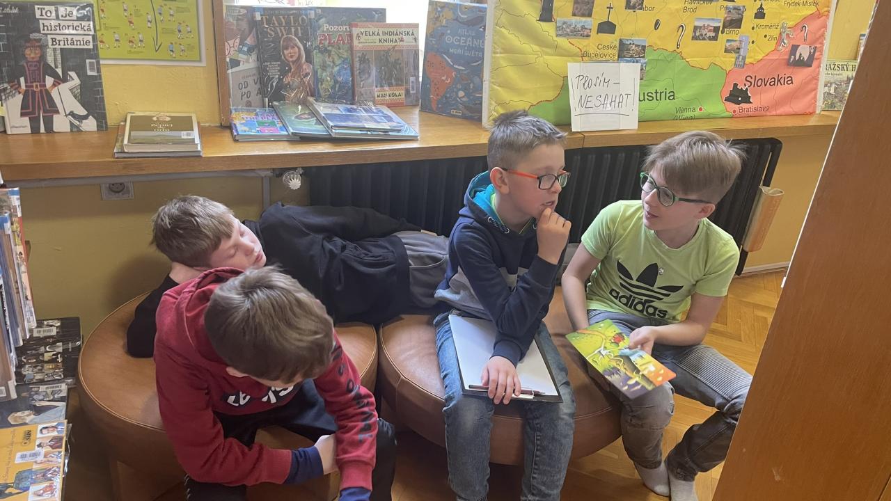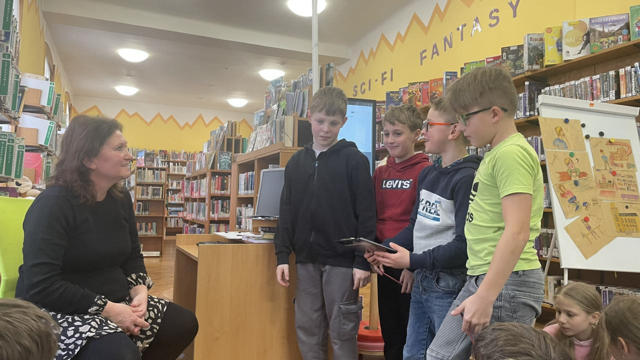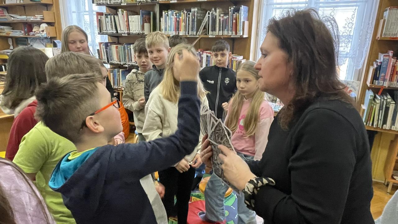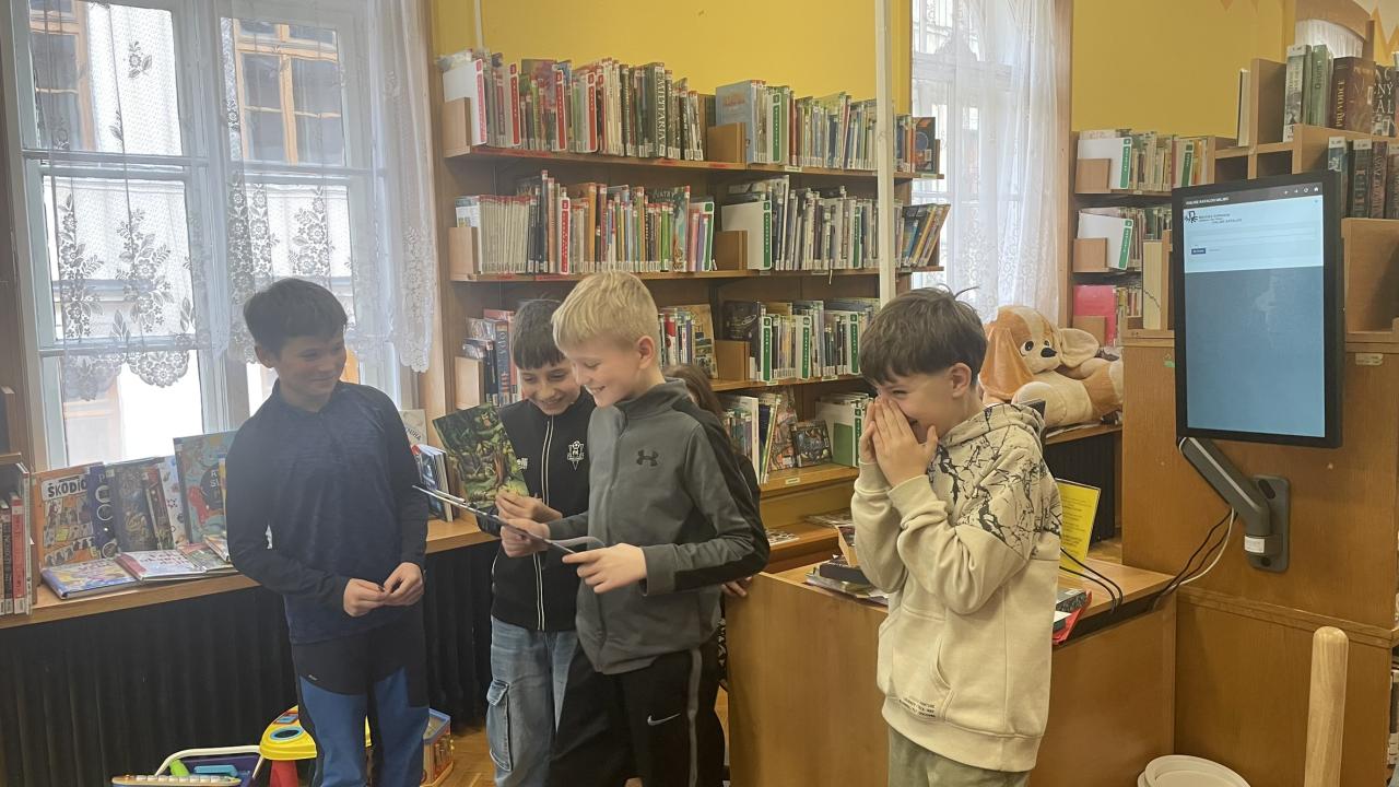 Ve středu 11. 2. se žáci naší třídy vydali do městské knihovny na vzdělávací program „Jak se vaří kniha aneb Hra na spisovatele“. Během této lekce se dozvěděli, jak vzniká kniha – od prvního nápadu až po její vydání v nakladatelství. Celý proces tvorby knihy byl žákům přiblížen na příběhu spisovatelky J. K. Rowlingová a jejího slavného hrdiny Harryho Pottera. Právě tento příklad byl pro žáky velmi atraktivní. Příběh dobře znají a je mezi nimi oblíbený. Díky tomu si dokázali lépe představit, že i obyčejný nápad se může proměnit v celosvětově úspěšnou knihu. Poté si sami vyzkoušeli roli spisovatelů. Ve skupinkách vytvářeli vlastní originální příběhy a psali k nim anotace. Své nápady následně prezentovali před „redaktorem“ – fiktivním nakladatelem, kterého se snažili přesvědčit, že právě jejich kniha by si zasloužila vydání. Musím říci, že všechny vzniklé příběhy byly opravdu velmi povedené, nápadité a kreativní. Žáci prokázali nejen fantazii, ale i schopnost spolupracovat, formulovat myšlenky a vystupovat před ostatními. Kdo ví, možná máme mezi sebou skutečné budoucí spisovatele či ilustrátory. Na závěr programu čekalo žáky milé překvapení. Každý z nich obdržel poukaz na půlroční bezplatné členství v knihovně, tedy možnost stát se na šest měsíců čtenářem bez nutnosti hradit registrační poplatek. Děkujeme Městské knihovně za krásný a podnětný program i za tento vstřícný krok, který jistě podpoří čtenářství našich žáků a jejich další cestu za knihami