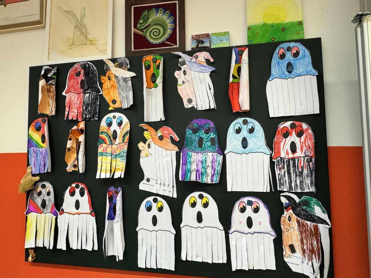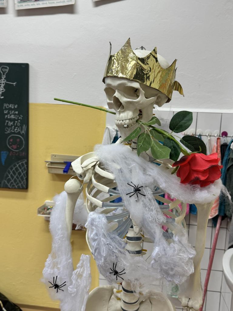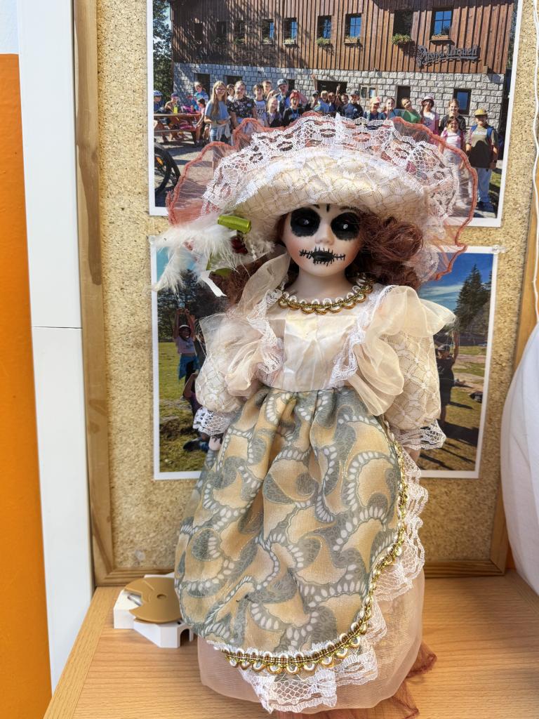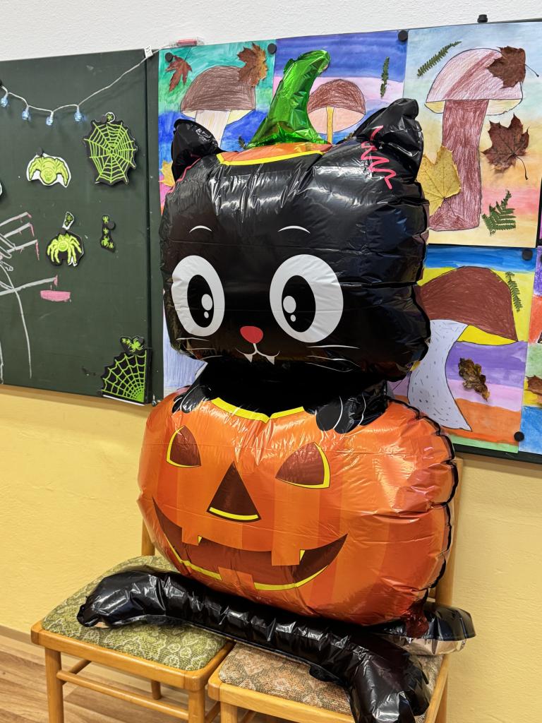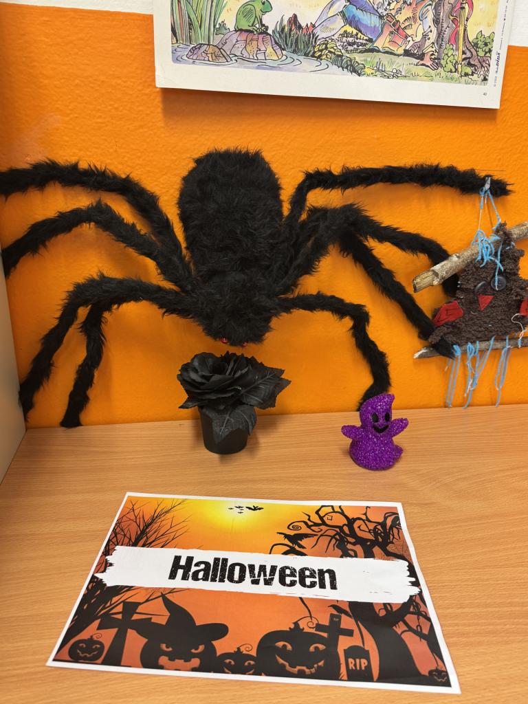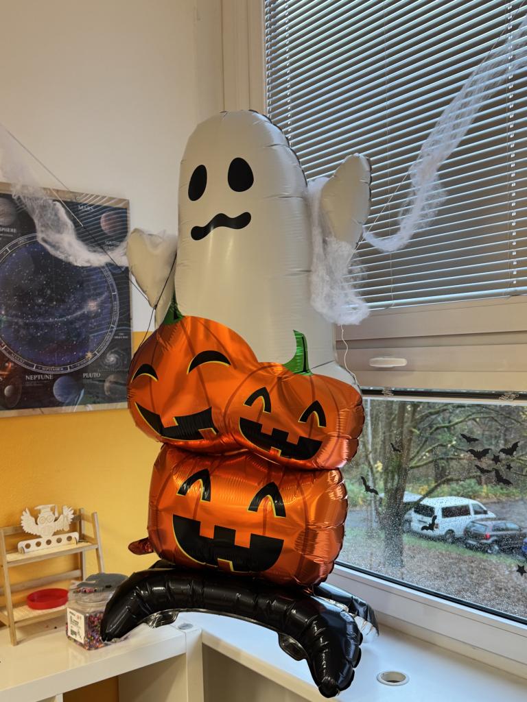 Třídy se zaplnily pavučinami, duchy, čarodějnicemi, dýněmi i záhadnými bytostmi, které by klidně mohly strašit v opravdovém strašidelném zámku. Některé dveře se otevíraly s hrozivým skřípáním, z jiných se ozývalo děsivé chechtání, a tu a tam prý někdo zahlédl i pohybující se kostru… 💀