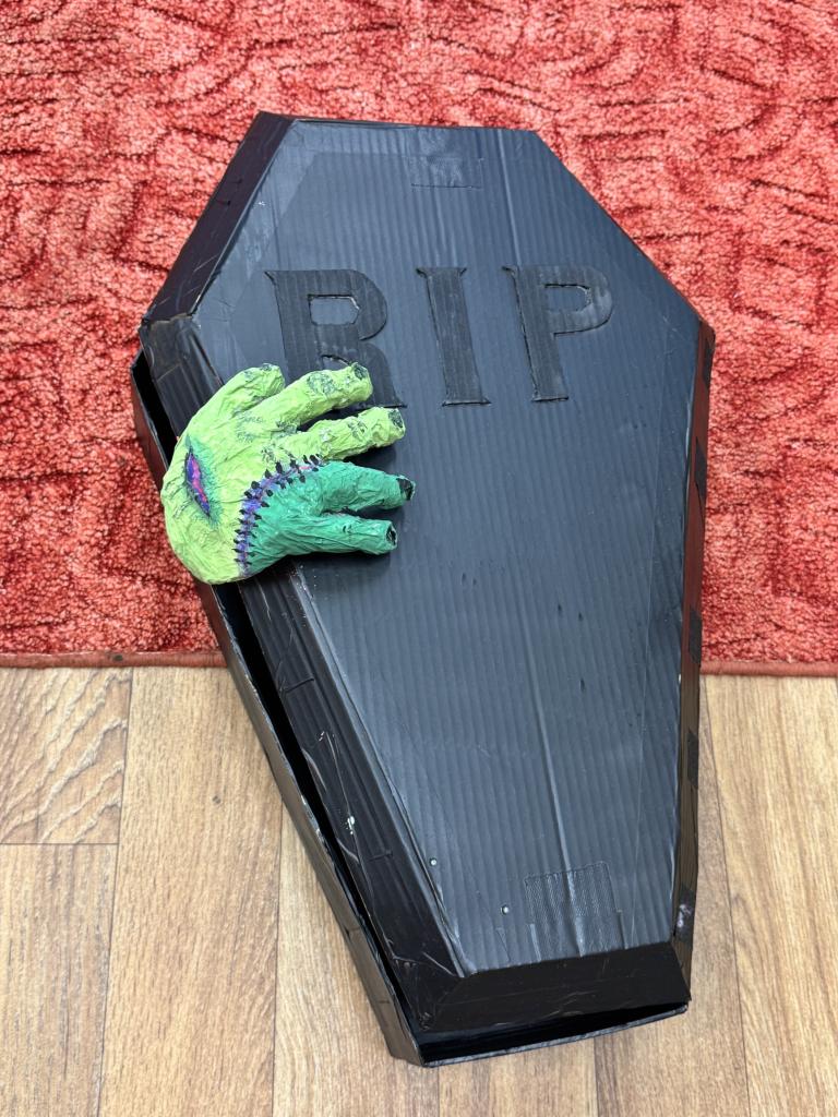 🥇 1. místo: 5.A – jejich třída se proměnila v opravdové strašidelnické doupě, kde se bály i pavučiny! Dokonce uspořádali pohřeb.